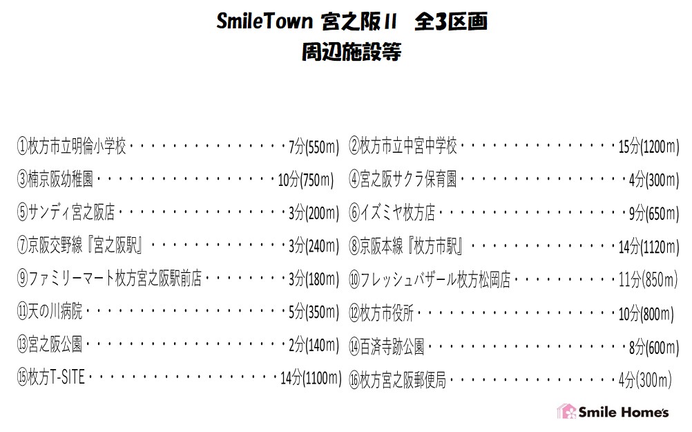 | 交通 | 京阪交野線『宮之阪』駅徒歩約3分 |